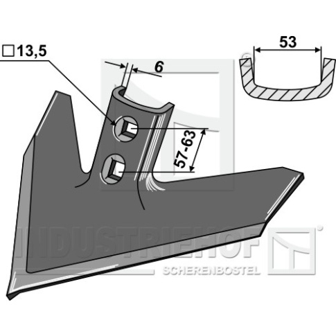 Grubość: 6 Szerokość robocza: 254 Odstęp pomiędzy otworami: 57-63 Kąt roboczy: 43°