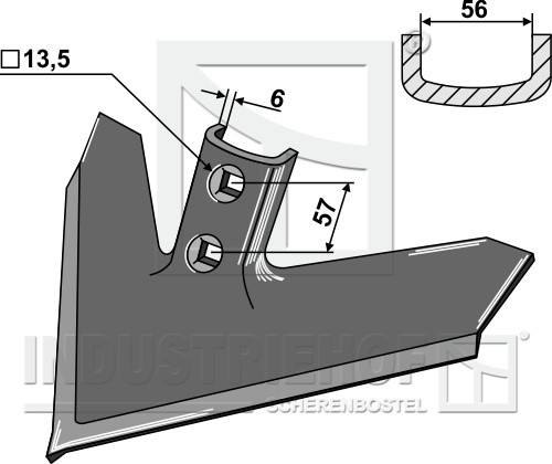 Grubość: 6 Szerokość robocza: 355 Odstęp pomiędzy otworami: 57 Kąt roboczy: 50°