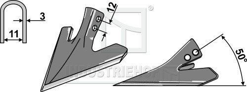 Szerokość robocza:120 Odstęp pomiędzy otworami:12 Grubość:3 Kąt roboczy:50°