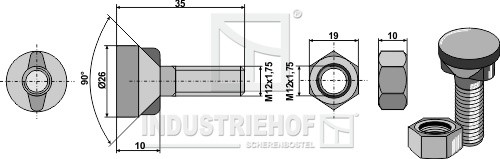 Jakość:10.9 Gwint:M12x1,75 D:O26 L:35 S:19 Nakrętha wg. DIN:934-8 X:90° c:10 x:90° m:10