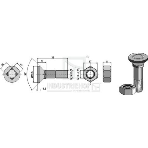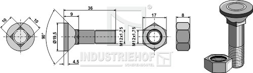 1236VLE Śruba płużna M12x1,75x36 z nakrętką sześciokątną 1236VLE.97