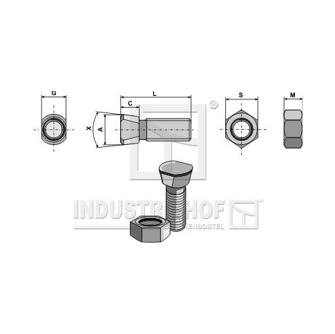 Jakość:10.9 Gwint:M12x1,75 L:40 G:3,6 M:10 S:19 C:7 Nakrętha wg. DIN:934-8 X:90°