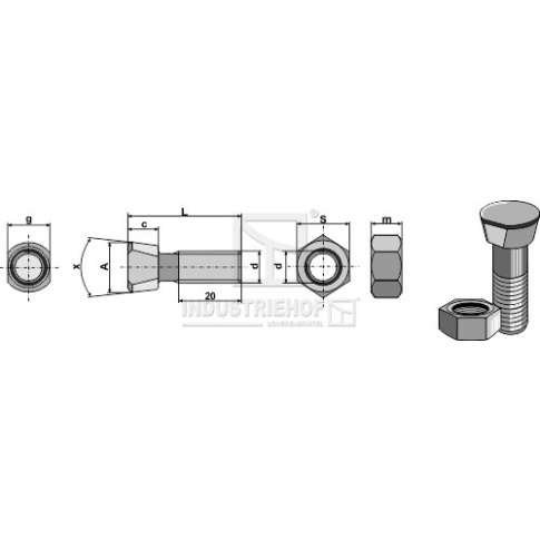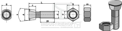 1439VN Śruba płużna M14 x 2 x 39 z nakrętką sześciokątną 1439VN.97