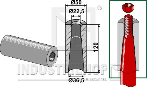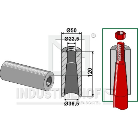 18100-31 Tulejka do wspawania do zębów z gwintem M22 18100-31.97