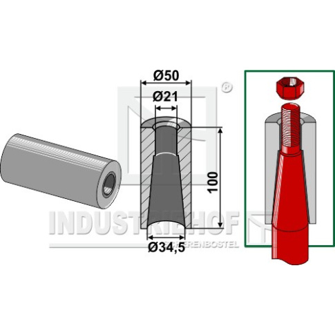 18100-34 Tulejka do wspawania do zębów z gwintem M20 18100-34.97