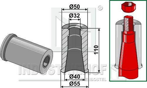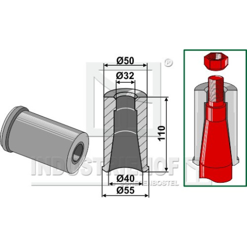 18100-46 Tulejka do wspawania do zębów z gwintem M30 18100-46.97