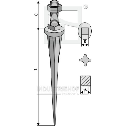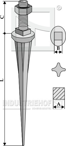 2020061 Ząb brony polowej prosty ze stali borowej o przekroju gwiazdy i końcówce stożkowej o twardości naturalnej 2020061.97