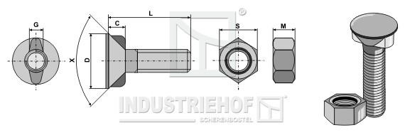 2060148 Śruba płużna DIN 11014 M20 x 2,5 x 60 z nakrętką sześciokątną 2060148.97