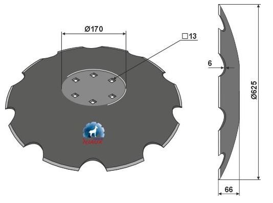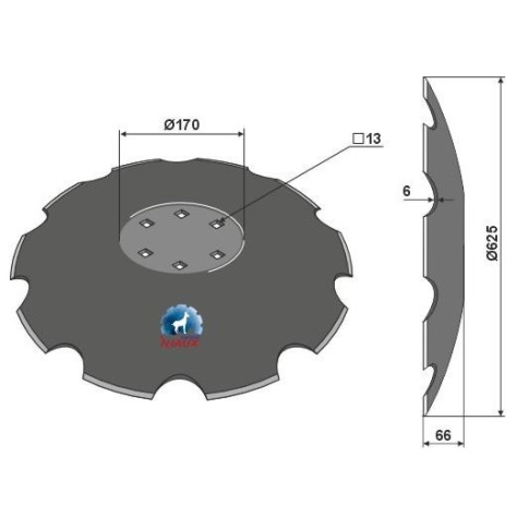 Ilość zębów: 10 Grubość: 6mm Średnica zew.: 625mm Wypukłość: 66mm