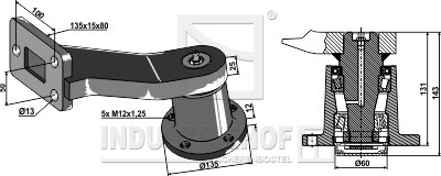 Średnica koła otworów:O113