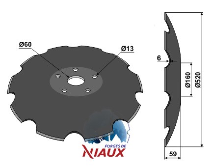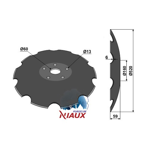 D:520 S:6 F:59 Ilość zębów:10 Średnica koła otworów:O110