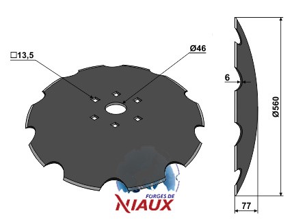 D:560 S:6 F:77 Ilość zębów:10 Średnica koła otworów:O182