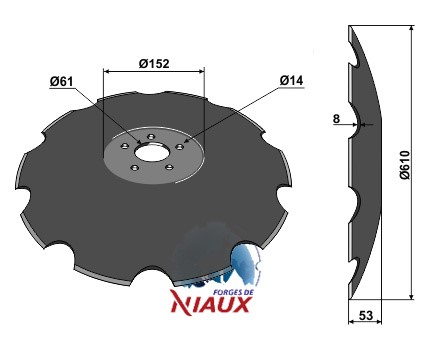 D:610 S:8 F:53 Ilość zębów:10 Średnica koła otworów:O113