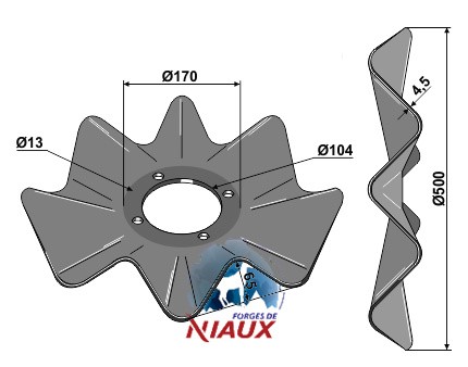 D:500 S:4,5 Ilość pofalowań:8 Średnica koła otworów:O135 W:65