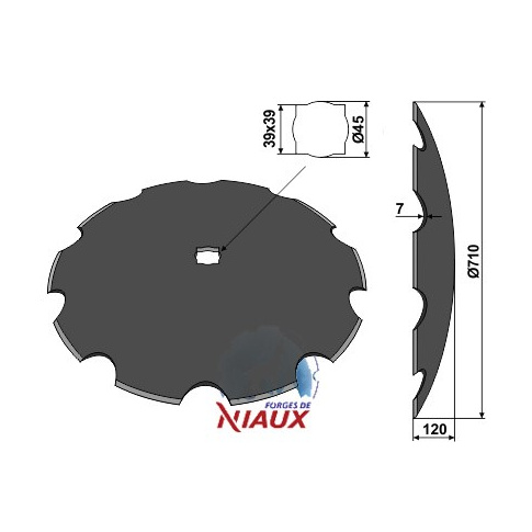 D:710 S:7 F:120 Ilość zębów:10 Wał czworokątny:39 oś okrągłą:45