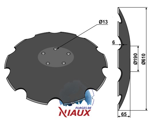 D:610 S:6 F:65 Ilość zębów:10 Średnica koła otworów:O140