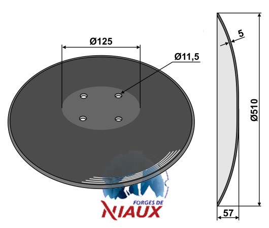 D:510 S:5 F:57 Średnica koła otworów:O120