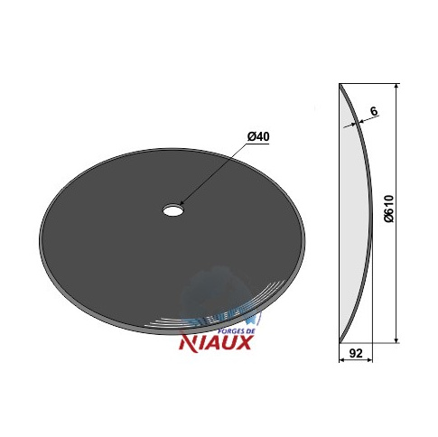 Średnica otworu wewnętrznego: 40 Grubość: 6 Średnica talerza: 610 Wypukłość: 92 Oś. okrągła: 38
