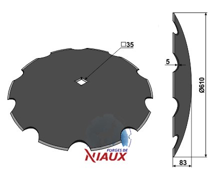 D:610 S:5 F:83 C ± 1mm:36 Ilość zębów:10 Wał czworokątny:35
