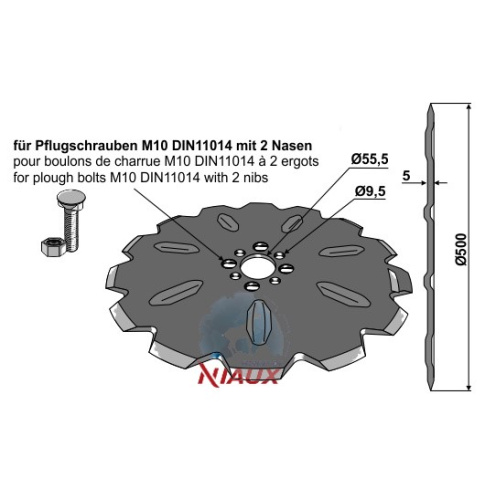 D:500 S:5 Ilość zębów:14 Średnica koła otworów - 1:O90 Średnica koła otworów - 2:O100