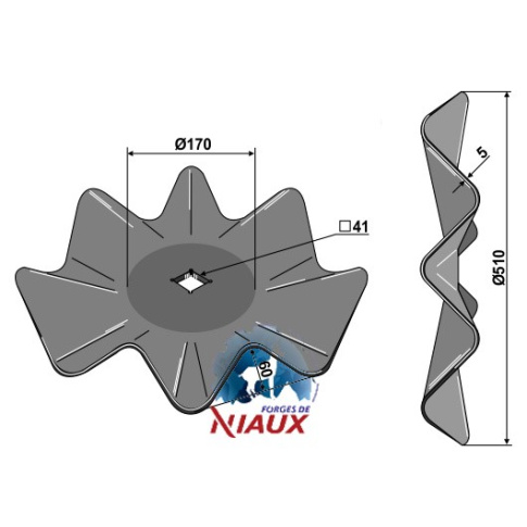 D:510 S:5 o d1:170 C ± 1mm:41 Ilość pofalowań:8 Wał czworokątny:40 W:60