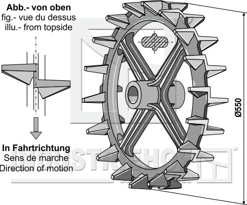o D:550 Szerokość piasty:155 do wałów:O50 Szerokość efektywna:135