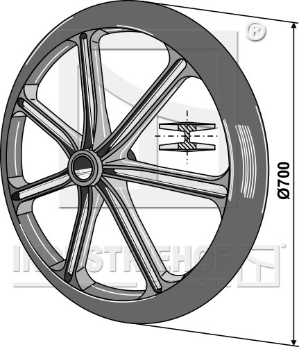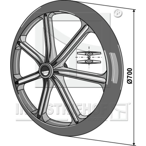 o D:700 Kąt cięcia:35° Szerokość piasty:150 do wałów:O50 Szerokość efektywna:35