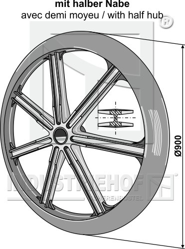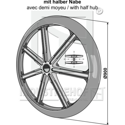 o D:900 Kąt cięcia:38° Szerokość piasty:100 do wałów:O60 Szerokość efektywna:56