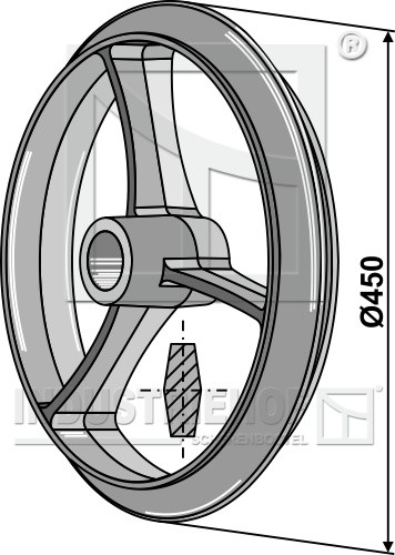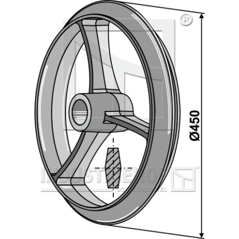 o D:450 Szerokość piasty:100 do wałów:O50 Szerokość efektywna:68