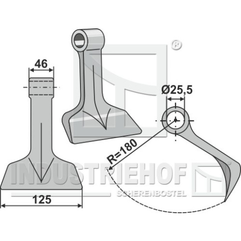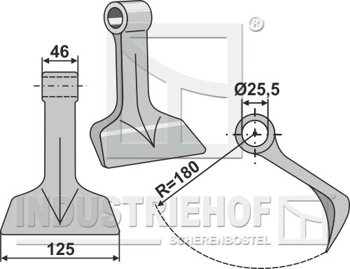 Promień:180 Szerokość robocza:125 Wymiary do montażu:46 Otwór:25,5