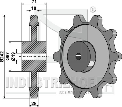 Ilość zębów:10 Podziałka łańcucha:70