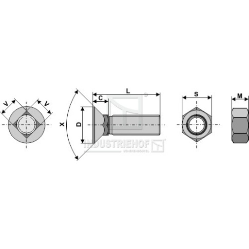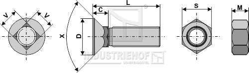 716450E Plough bolt 7/16" UNC x 45 and hexagon nut 716450E.97