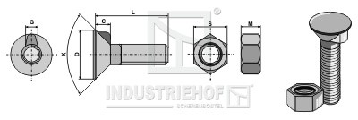 83548 Śruba płużna DIN 604 M 8 x 1,25 x 35 z nakrętką sześciokątną 83548.97