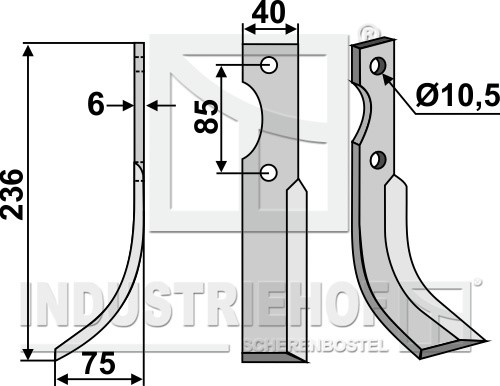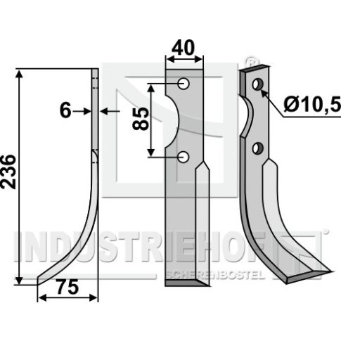 Grubość:6 Długość:236 Odstęp pomiędzy otworami:85 Szerokość:40 Otwór:10,5