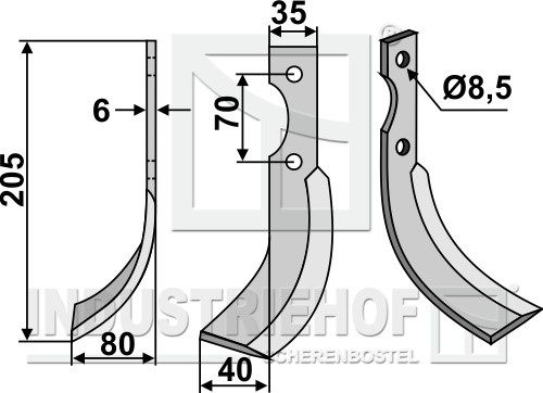Typ maszyny:ACF400 Grubość:6 Długość:205 Odstęp pomiędzy otworami:70 Szerokość:35 Otwór:8,5