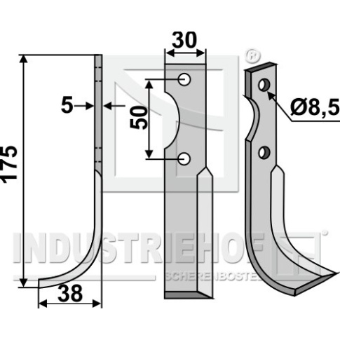 Typ maszyny:Minny Grubość:5 Długość:175 Odstęp pomiędzy otworami:50 Szerokość:30 Otwór:8,5