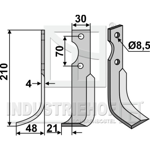 Grubość:4 Długość:210 Odstęp pomiędzy otworami:70 Szerokość:30 Otwór:8,5