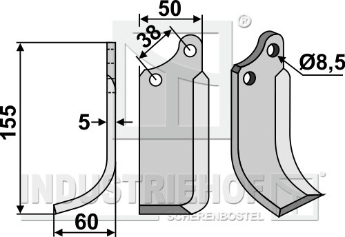 Grubość:5 Długość:155 Odstęp pomiędzy otworami:38 Szerokość:50 Otwór:8,5