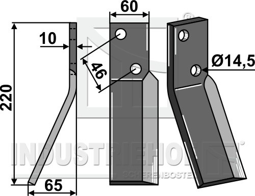 Grubość:10 Długość:220 Odstęp pomiędzy otworami:46 Szerokość:60 Otwór:14,5