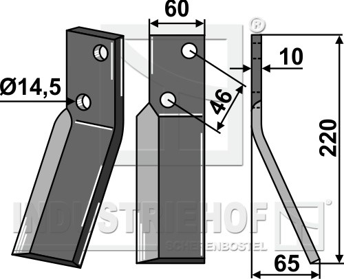 Grubość:10 Długość:220 Odstęp pomiędzy otworami:46 Szerokość:60 Otwór:14,5