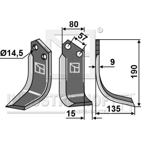 Grubość:9 Długość:190 Odstęp pomiędzy otworami:57 Szerokość:80 Otwór:14,5