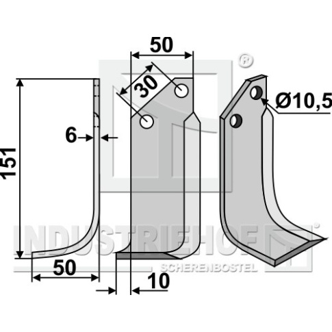 Grubość:6 Długość:151 Odstęp pomiędzy otworami:30 Szerokość:50 Otwór:10,5