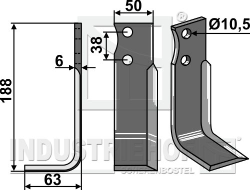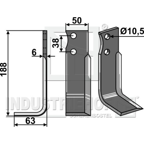 Grubość:6 Długość:188 Odstęp pomiędzy otworami:38 Szerokość:50 Otwór:10,5