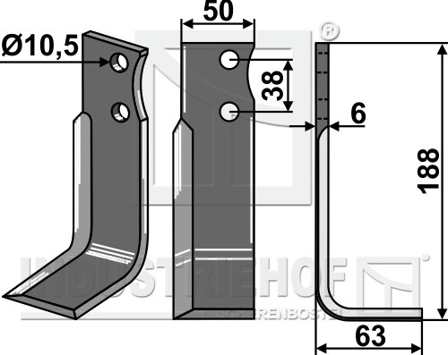 Grubość:6 Długość:188 Odstęp pomiędzy otworami:38 Szerokość:50 Otwór:10,5