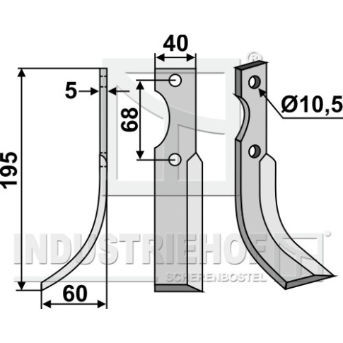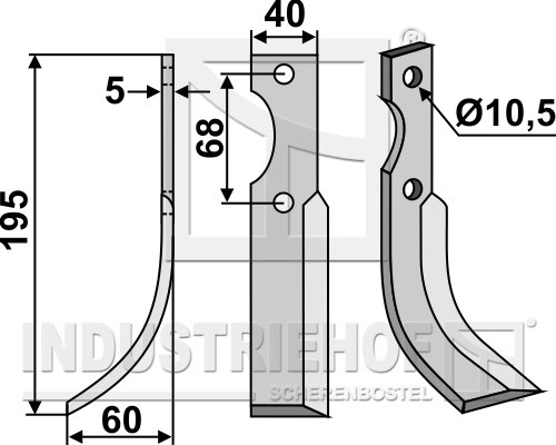Grubość:5 Długość:195 Odstęp pomiędzy otworami:68 Szerokość:40 Otwór:10,5