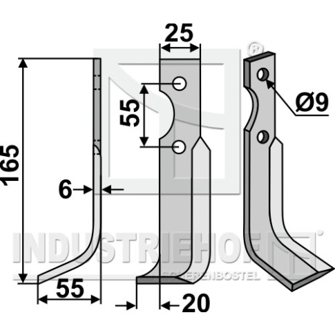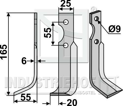 Grubość:6 Długość:165 Odstęp pomiędzy otworami:55 Szerokość:25 Otwór:9