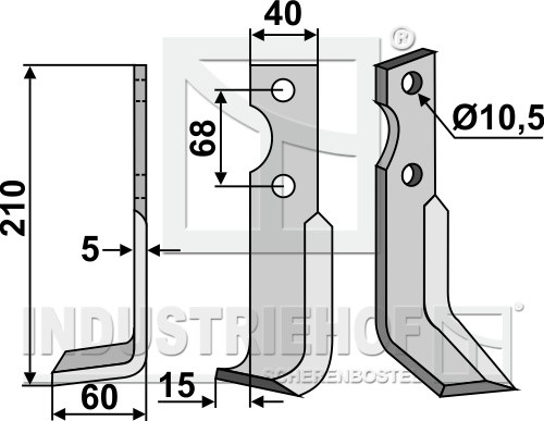 Grubość:5 Długość:210 Odstęp pomiędzy otworami:68 Szerokość:40 Otwór:10,5