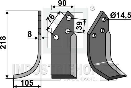 Grubość:8 Długość:218 Odstęp pomiędzy otworami:76 Szerokość:90 Otwór:14,5