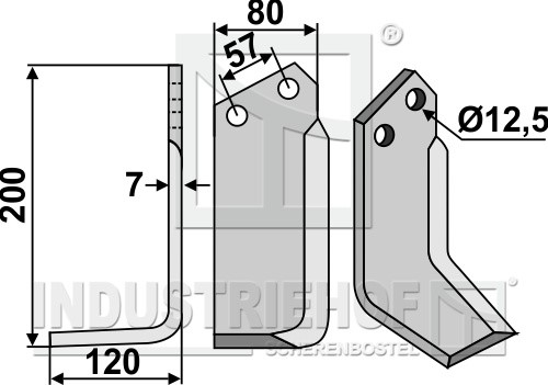 Grubość:7 Długość:200 Odstęp pomiędzy otworami:57 Szerokość:80 Otwór:12,5