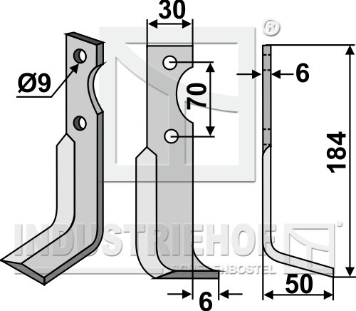 Grubość:6 Długość:184 Odstęp pomiędzy otworami:70 Szerokość:30 Otwór:9